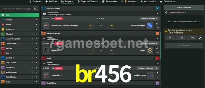 O br456 oferece uma grande seleção de opções de apostas em e-sports com probabilidades competitivas